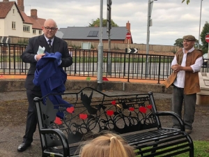 Cllr. Howard Roberts unveiled the bench at this years Heritage Weekend. Mr. Steve Garrett to the right in this picture, Chair of the Ryton History Group which spearheaded the organisation of the three day event.